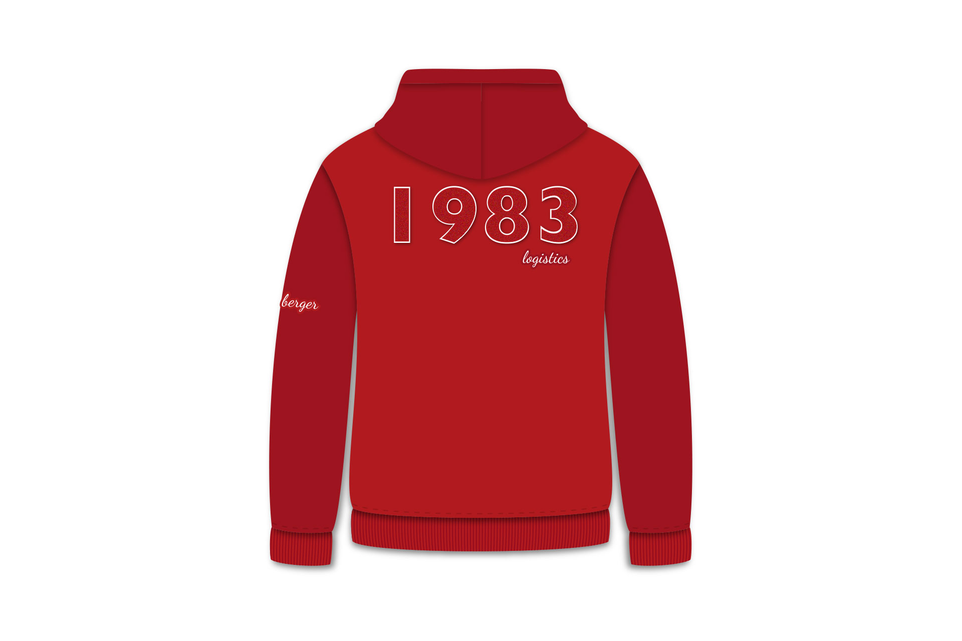 Im selben Jahr haben wir mit einem zweiten, bewusst anderen Hoodie-Entwurf überzeugt: ein Heritage-Design im Collagejacken-Stil, das die Tradition und das jahrzehntelange Bestehen des Unternehmens sichbar macht. Kern der Idee: Markenhistorie nicht nur abzubilden, sondern anzuziehen – als fühlbare Identität.